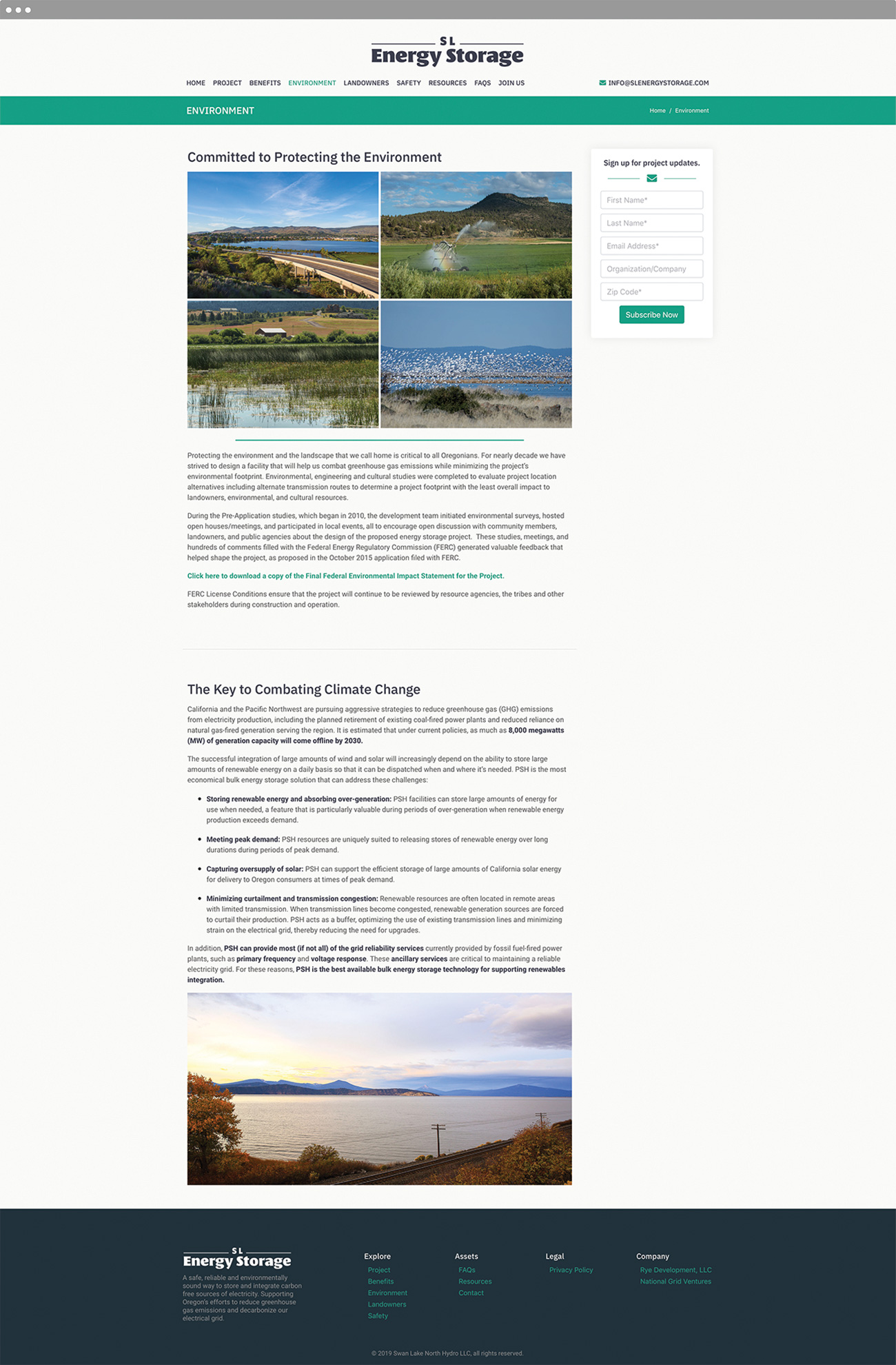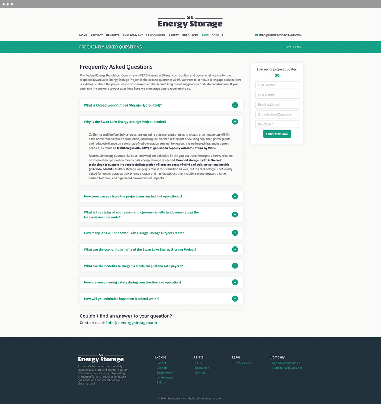 The Swan Lake Energy Storage project was recently granted a federal license for construction/operation in Southern Oregon and needed a website to inform the local community and interested parties on the basics and benefits of the project. The client wanted a site that was easy to use, navigate, understand and give the user a simple way to keep informed on the project going forward.